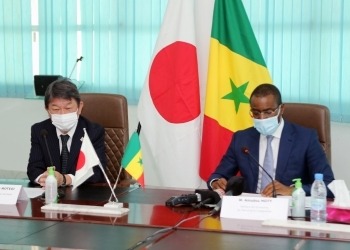 Le 10 janvier 2021,pendant environ 20 minutes, S.E. M. MOTEGI Toshimitsu, Ministre des Affaires Etrangères du Japon, qui est actuellement en visite au Sénégal, a eu un entretien avec S.E.M. Amadou HOTT, Ministre de l’Economie, du Plan et de la Coopération de la République du Sénégal. A l’issue de la réunion, les deux Ministres ont signé et échangé des Notes concernant l’octroi d’un prêt en yens relatif au « Projet de production de riz irrigué dans la vallée du Fleuve Sénégal ».
